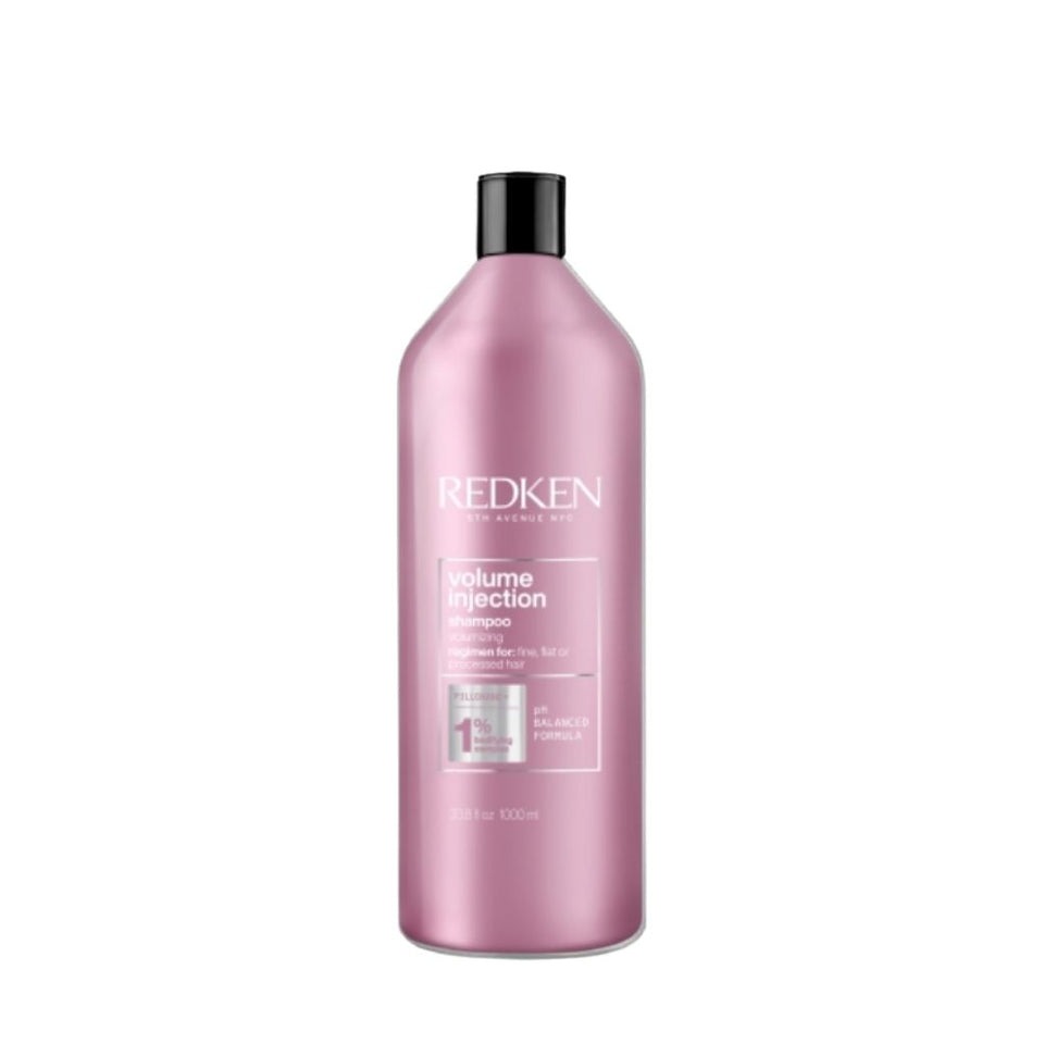 Redken’s Volume Injection Shampoo is formulated with Redken’s Bodifying Complex with Filloxane helps to provide instant volume to fine, flat, or processed hair. This volumizing shampoo lightly cleanses with gentle scalp care, giving hair a volume boost, creating lift and body.